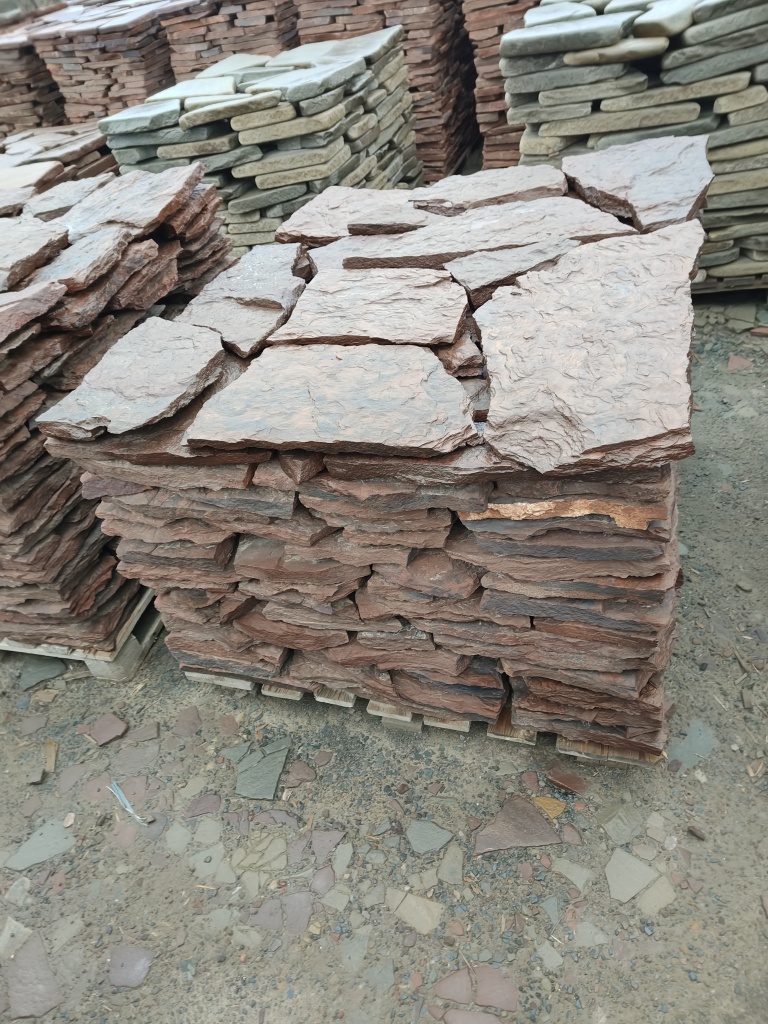 Плитняк песчаник дракон красный для облицовки цоколя, отмостки 20-35 мм